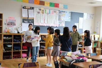 5年生の練習の様子です。体育館や教室など演目によって分かれて練習です。友達同士アドバイスをしあったり、動き方の確認をしたり、子どもたちが主体的に動く様子はさすが高学年です。