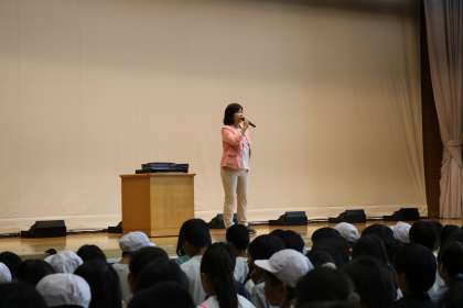 久しぶりの全校朝会です。6年生の朝の挨拶の号令に続いて、校長先生からは「やまのフェスタ』に向けて準備をがんばりましょうというお話がありました。