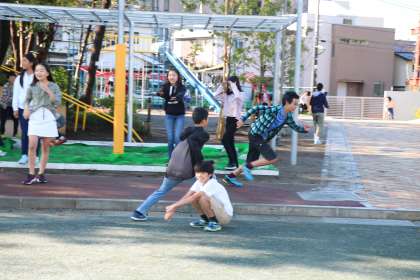 6年生のドロケイ、鬼ごっこは真剣です。