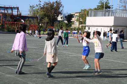 6年生のドロケイ、4年生の短縄で楽しむ様子です。
