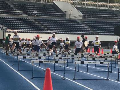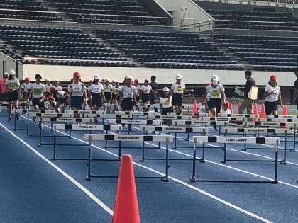 女子のハードル、100メートル走の様子です。