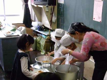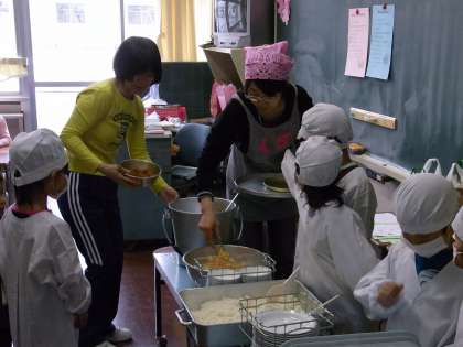 今日から1年生も給食が始まりました。山野小学校では5年前から「やまのき会」の皆さんが、配ぜんのお手伝いに来てくださいます。今日も、各クラスに1名の方が入ってくださり、初めての給食でも安心して始めることができました。本当に地域の方々に支えられています。ありがとうございます。当の1年生たちは、大好物のカレーライスで大喜びでした。