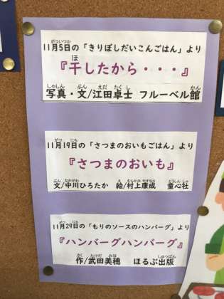 食欲の秋はまだまだ続きます。給食室と図書室のコラボ企画、本deランチは11月も続きます。お楽しみに!