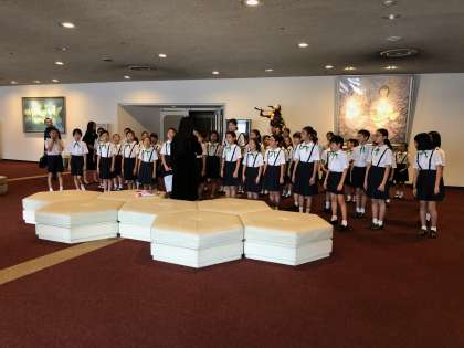 10/27に昭和女子大学人見記念講堂を会場に開催された、世田谷区合唱交換会の様子です。山野小の合唱団が出場しました。合唱中は撮影禁止なので、本番前の様子です。