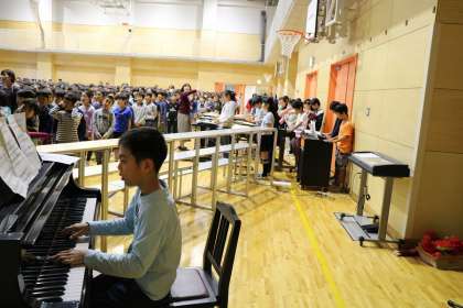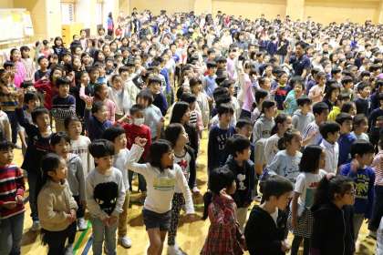 6年生のあいさつは、やまのフェスタに向けて、気合の入る一言でした。そして、今月は、山野フェスタの歌「なかまをしんじて」です。音楽委員の楽器伴奏に合わせて、心を合わせ、元気いっぱい歌います。歌詞がとてもいい歌です。家でもぜひ聞いてみてください。