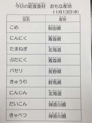 11月13日 今日の給食