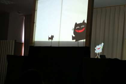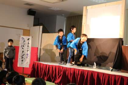写真はナゾトレ・なぞかけ、影絵劇、小劇の様子です。
