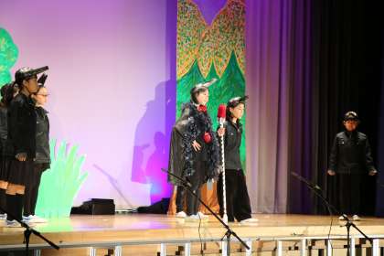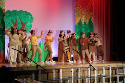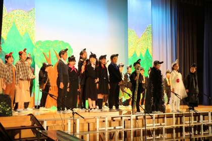 カラスの国に生まれた王子・ミニグラスはほかのカラスとは少し違っていました。王子の誕生は、幸せをもたらすのか、災いをもたらすのか。カラスの国は大きく混乱していきます。それぞれの役に思いを込めて表現する様子です。