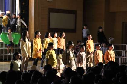 5年生は、自分たちで演出を考え、動物になりきり、表現しました。