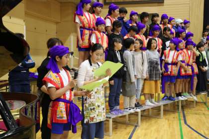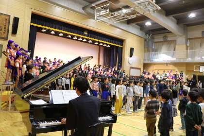 2日間の児童鑑賞日が終わりました。体育館に全校児童が集まり、6年生の司会進行のもと、エンディングがありました。6年生と一緒に「たからもの」を歌えるのは、今日が最後です。最高学年6年生がひな壇に立ち、その前に、次の最高学年を担う5年生が立ち、その高学年と向かい合わせになって合唱しました。6年生の歌う姿を見て胸が熱くなったのは私だけでしょうか。