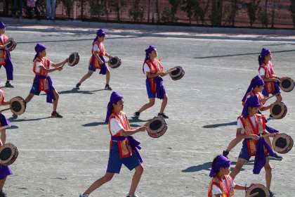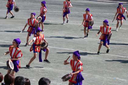 校庭を伸び伸び使い、所作がびしっと決まり、しまった演技でした。