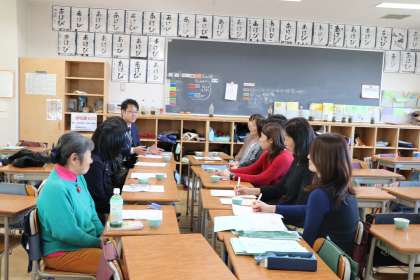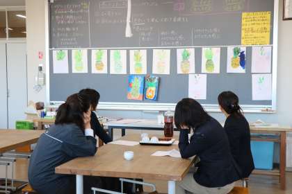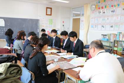 授業の後は、教科ごとに分かれて、授業や教科の学習についての協議会です。小学校の先生からだけでなく、中学校の先生からもご意見をいただきます。小中連携して、この地域の子たちのために学びを深めました。さっそく明日からの授業に生かしていきたいと思います。