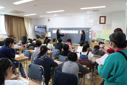 今日の午後は、砧の学び舎小中合同研究会がありました。砧小学校、明正小学校、山野小学校に小中の先生方が分かれ、授業を通して学ぶ研究会です。