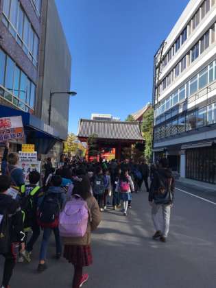 水上バスを降りて、浅草寺境内まで来ました。ちょっとだけ散策します。