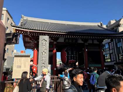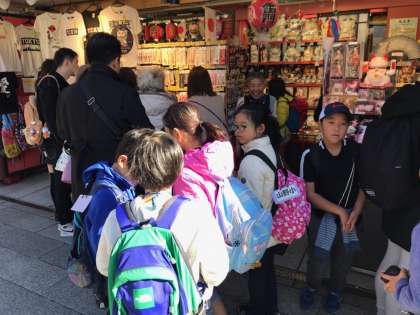 浅草寺周辺はすごい人出です。学校の見学も複数あります。限られた時間とお小遣いで、買い物を楽しみました。