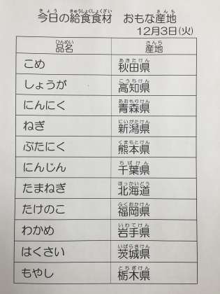 12月3日 今日の給食