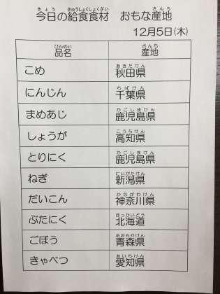 12月5日 今日の給食