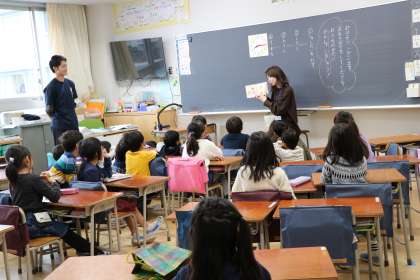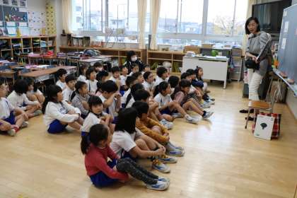 1年生の様子です。担任の先生の読み聞かせも好きな子どもたちですが、いつもと違うお母さんの声も大好きです。