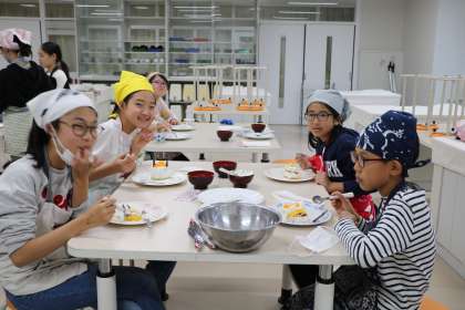 料理クラブは、ケーキのデコレーションを楽しんでいました。個性あふれるおもいおもいのデコレーションケーキを、私も味見させていただきました。
