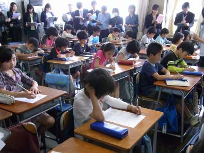 山野小学校では、研究テーマを「一生懸命って、いいな」とし、キャリア教育について特別活動を切り口に進めています。「主張し合い、折り合いをつけられる子ども」「目標に向かい向上心をもち、努力する子ども」「よく考え、自ら真剣に取り組む子ども」「最後までやりぬく子ども」の育成を目指しています。今日は、4年1組で研究授業がありました。文部科学省初等中等教育局教育課程教科調査官 杉田 洋先生を講師にお招きし、ご指導いただきました。子どもたちのより良い成長のため、高め合い、学び合う教師集団です。