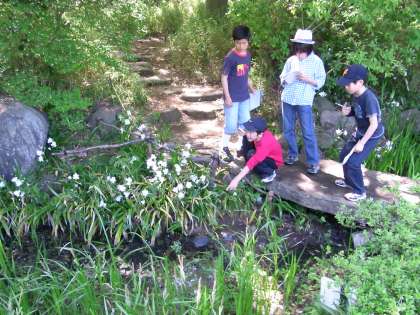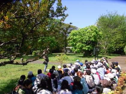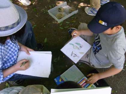 山野小学校から歩いて15分のところにある桜丘すみれば公園は、四季折々の姿を見せてくれます。生き物や、お花や木々が子どもたちを迎えてくれます。4年生の理科の授業では、季節ごとの自然について学ぶ単元があります。まさにそれを体験できる素晴らしい場所が身近にあるのです。子どもたちは、見たり触ったりにおいをかいだり耳を澄ましたりと、春を体中で感じていました。自分の木を決め、これから1年間、観察していきます。