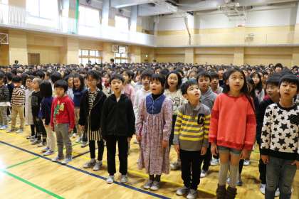 今日は2学期の終業式です。子どもたちの姿勢に、いつも以上に一人一人の意志が感じられてとても立派でした。子どもたちには、2学期の最大行事「やまのフェスタ」大成功は、それぞれの学年で仲間を大切にし仲間のことを考え、自分のやるべきことに一生懸命取り組んだからこそだったということを話しました。人の心を大きく動かすのは「まじめさ」と「真剣さ」です。そして人を思い人のために力を尽くすことは、自分自身のさらなる成長にもつながります。