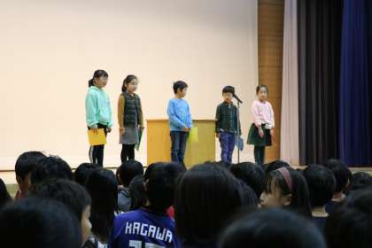 2年生代表児童による挨拶も立派でした。2学期がんばったこと、そして3学期頑張りたいことを詳しくはっきり、発表しました。