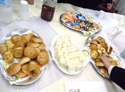 この学校を去られた先生方、この学校に新しく来た先生方、主事さん方のために、PTAの皆さんが心をこめた会を開いてくれました。恒例となったパンが並び、美味しく頂きながら思い出話に花が咲きました。このような温かい会を開いてくださり、本当に感謝しています。ありがとうございました。