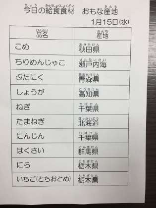 1月15日 今日の給食