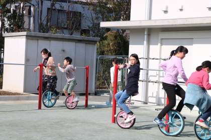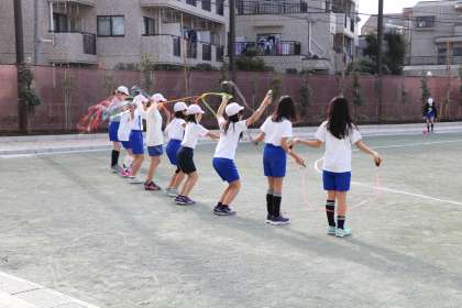 山野の先生たちもたくさん校庭に出て一緒に共遊びを楽しんでいます。
