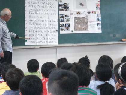 理科の授業にゲストティーチャーを迎えて、カブトムシの飼い方について丁寧に教えていただきました。幼虫が育ちやすい環境や成虫になったときの注意など、熱心に聞いていました。幼虫もわけていただきました。各学級で育てていきます。土の中での成長が気になりますが、刺激しないようにして見守っていきます。