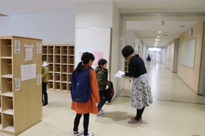 受付玄関の様子(何級はどこの教室と、先生に教えてもらい移動します)