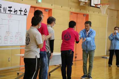 そして優勝した山野小学校先生チーム「やまのん・やまぽんチーム」の表彰の様子です。
