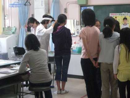 校医の先生にきていただき、耳と鼻の健康状態を丁寧に診ていただきました。