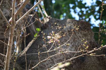 山野の山のフェンス沿いにある桜と、BOP入口付近谷戸川沿いにある桜の花が開花しました。卒業式には、さらにきれいな花を咲かせてくれることと思います。