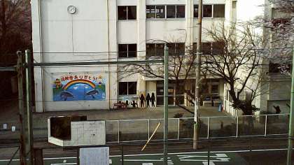 このホームページで随時ご紹介してきましたが、学校協力者の大井さんと小川さんが、旧校舎解体、仮設校舎、新校舎建設から完成、第一第二校庭整備、保育園完成まで5年半にわたってドローンで写真を撮影してくださいました。ようやくすべての工事が終了しましたので、今回はその総集編をお届けします。まずは同じ位置から見た旧校舎と新校舎の様子です。旧校舎へのメッセージ壁画が見えます。