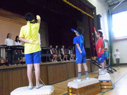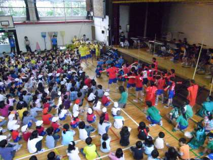 朝から冷たい雨。校庭での練習ができないので、体育館で、開閉会式の練習、準備運動の練習をしました。やまの子パワーで、雨雲を吹き飛ばしてください!