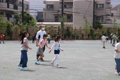 今日は、外遊びができました。第2グラウンドも工事が完了し使えるようになったのですが、新しいせいか雨上がりの土が安定していません。今日は、第1グラウンドのみ使用し遊びました。山野小学校は、先生たちに「共遊び」を推奨しているので、担任の先生もいっしょに楽しそうです。