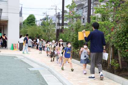 下校の時刻になりました。1年生は同じ方面に帰るお友達を覚えたり、安全な歩き方を覚えたりしながら、しばらくの間集団下校となります。複数人で下校することは、いろいろな意味で安全にもつながります。