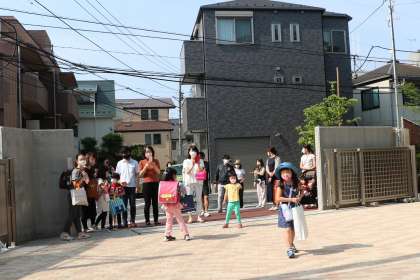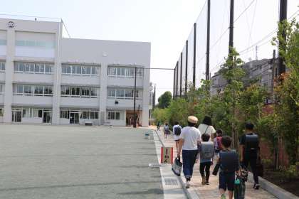 今日は1・6年生の分散登校です。門のところでは、送りに来てくださった保護者の方々が見守っていらっしゃいます。「よかったら、中までどうぞお入りください」と声をかけると、「だいじょうぶ、ここで。一人で行かれる!」と言う1年生も。たくさんの先生たちが、玄関に、教室にお手伝いのため来てくれました。