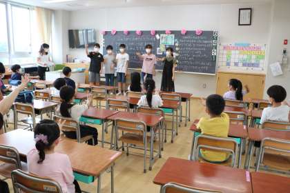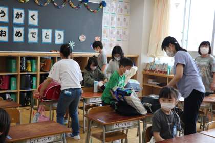 朝のしたくや、休み時間に、6年生がお手伝いをしたり一緒に遊んだりしに来てくれました。じゃんけん大会で盛り上がったクラスもありました。