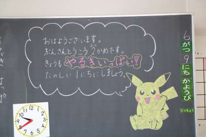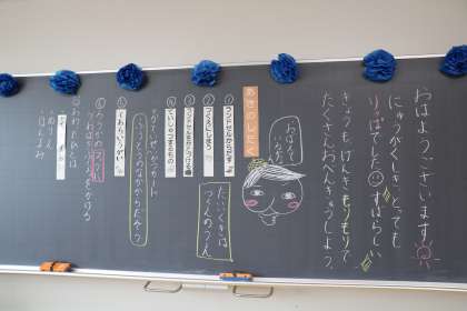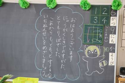 1年生の教室にも、担任からのメッセージが。