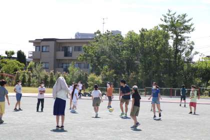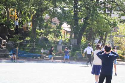 休み時間の5年生の様子です。担任の先生も全員外に出て、いっしょに遊んでいます。