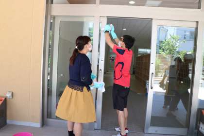 午前中児童が下校してから、全教職員で手分けして、消毒作業です。