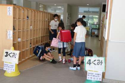 今日は分散登校10日目。1・6年生B、2・5年生Aの登校日です。