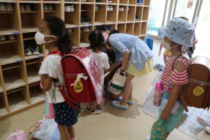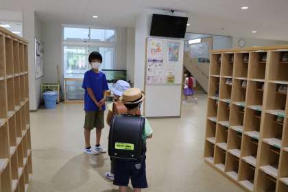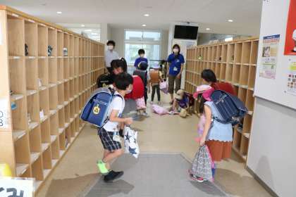 6年生は1年生のために少し早目に登校してくれています。玄関に6年生がいるとほっとする1年生もいることでしょう。