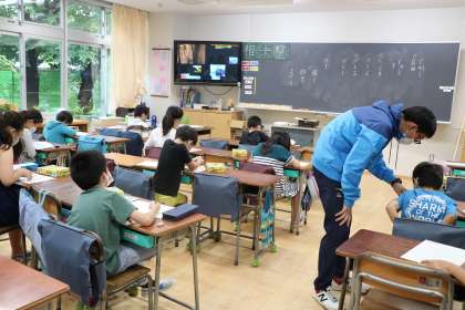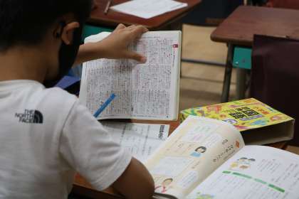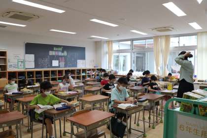 2年生、国語学習の様子です。国語辞典の使い方です。どのクラスも落ち着いて学習しています。