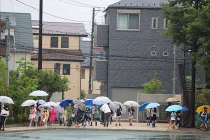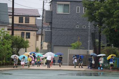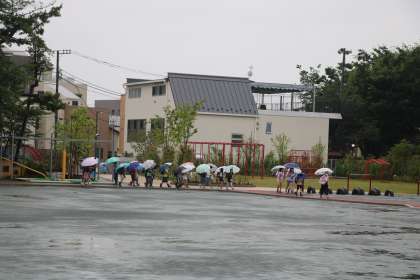 ちょうど登校時間、雨がひどく降っていましたが、竹内門で出迎えていると、子どもたちの元気なあいさつやハイタッチならぬエアータッチがたくさんあって、嬉しかったです。8:00〜8:15の登校にご協力いただき、ありがとうございます。