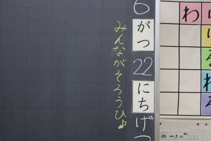 写真は、子どもたちを待ちわびている教室の様子です。