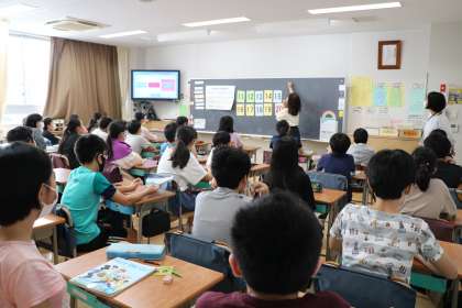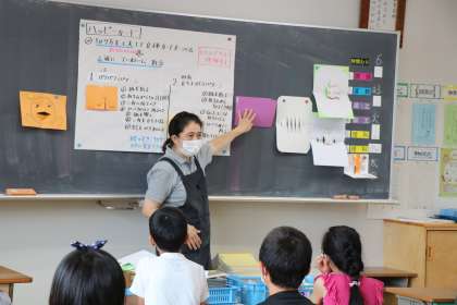 専科の学習の様子です。音楽室や図工室では対面になる時間が長くなるので、教室でできることは教室で学習します。写真は